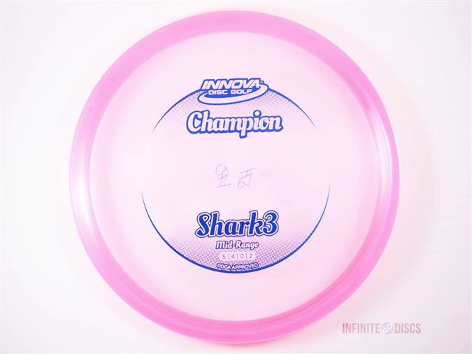 The Shark3 is “faster and sleeker" than the original Shark. This is a stable midrange designed to attack the fairways as predictable shot shaper. This disc features a smooth rim that allows for a consistent release. Unlike the original Shark, which is available only in DX plastic, the Shark3 is available in Innova’s new blend of Champion plastic, which has a slightly more grip and brighter translucent colors. 5/4/0/2. Innova Champion plastic is a transparent ultra durable hi-tech plastic that provides outstanding performance and long life. Discs in Champion Line plastic maintain their flight characteristics 5X longer than do DX discs.