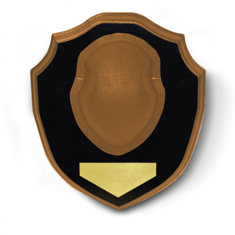 Proudly display your latest trophy with our Deer Antler Mounting Plaque. Elegant and easy to assemble, it includes a black lacquered plaque, grained-vinyl horn cap, brass plate for engraving, and mounting hardware.