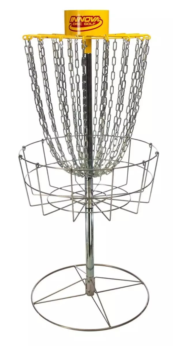The Innova DISCatcher Sport 24 is the proven portable disc golf basket that’s right at home on the course, in the park, or in your backyard. * Sturdy *Pro level disc catching *Easy assemble and tear down **Shipping Notice: Targets can only be shipped to domestic customers at this time. Based off the classic Innova Sport basket design that has elevated the putting of thousands of disc golfers over the years, this updated Sport basket boasts 24 disc-catching chains. Portable: Simple five-part assembly and tear-down. All you need is a screwdriver. Weight: 35 pounds (Easy to move around the yard). Looking for some cool putting drills? Features: 24 galvanized steel chains (18 outer, 6 inner) – Galvanized steel pole, basket, and chains – Sturdy steel rod – four spoke base – Powder coated chain rack and base – Breaks down easily for road trips and storage. – PDGA approved for tournament play.
