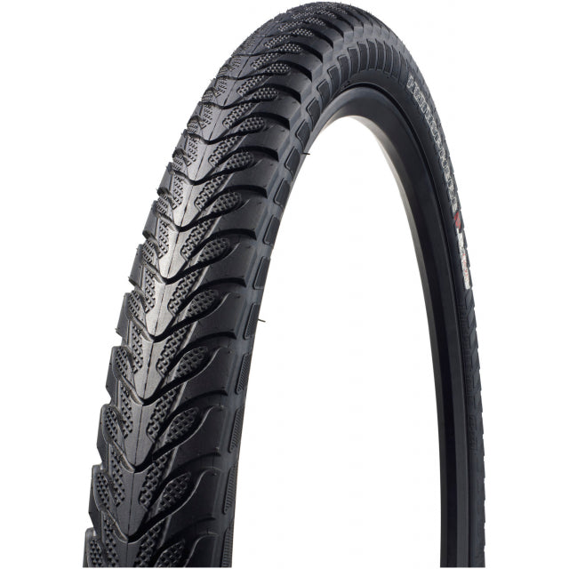 The Hemisphere is a modern, versatile, and durable trekking tire with tough Flak Jacket puncture protection and a bold tread that delivers control on loose surfaces. This tire's serial center blocks roll easily on paved surfaces, while also providing off-road traction through wide-spaced shoulder blocks that bite into soft ground. Altogether, the Hemisphere will excel on streets and bike paths alike.