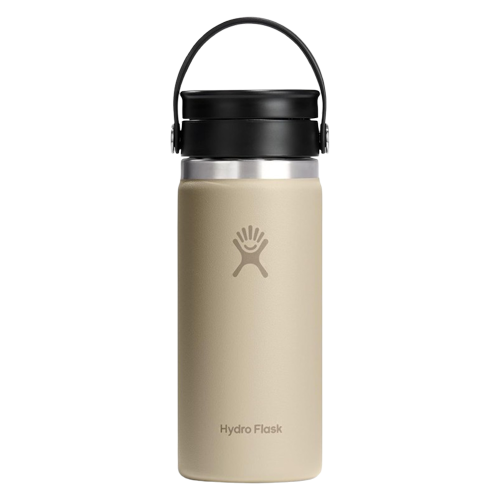 • 16 OZ OAT TAN FLEX SIP BOTTLE: Designed for hot drinks, Hydro Flask’s insulated Wide Mouth water bottle with Flex Sip Lid is cupholder compatible and leakproof. This insulated, stainless steel bottle is ideal for coffee or tea, keeping hot drinks hot and cold drinks cold.