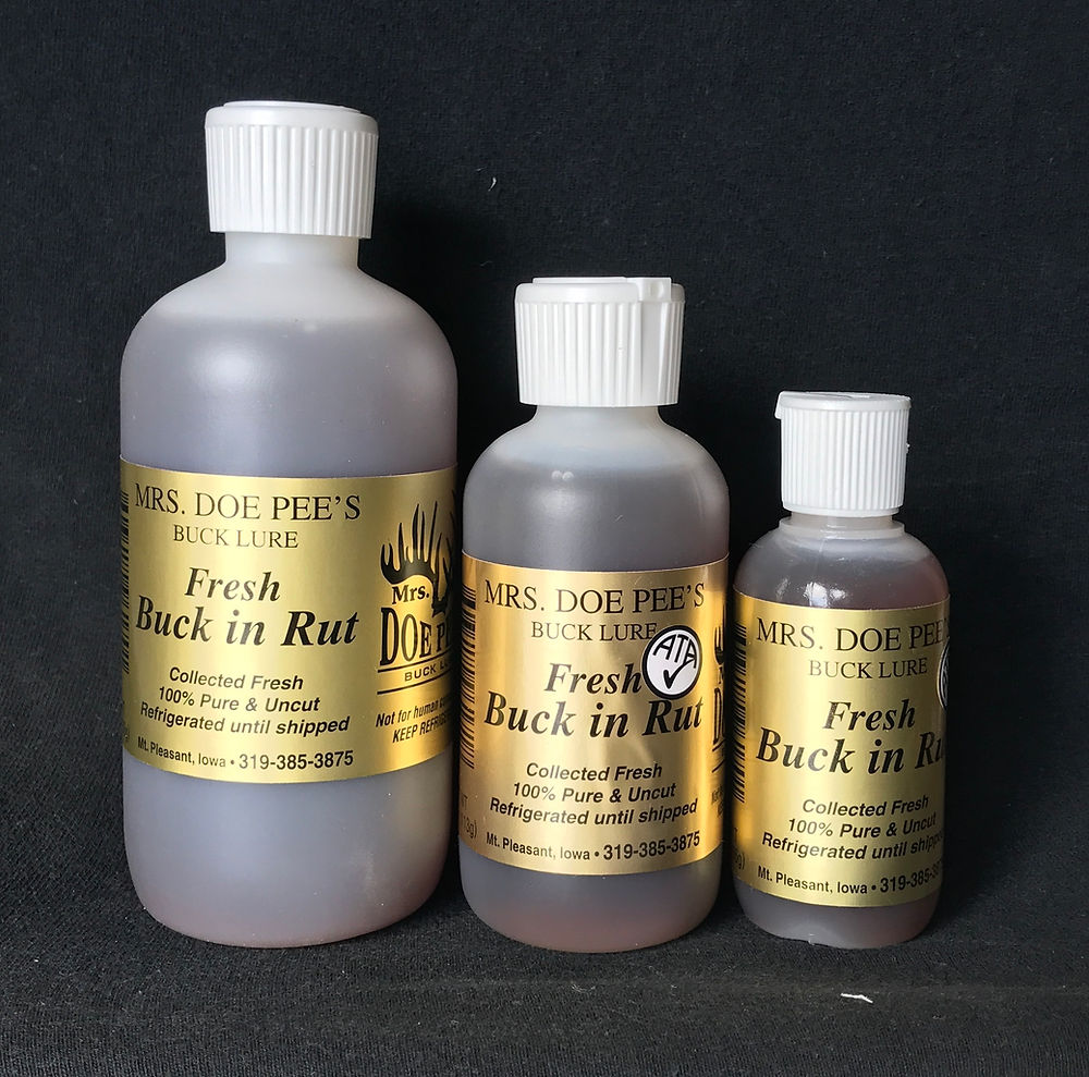 Mrs. Doe Pee's Buck in Rut can play a big role in getting the areas dominant and mature buck to stay active. By using the Buck in Rut on an area scrape, or mock scrape, the dominant buck will feel the presence of an intruder in his area, forcing him to maintain a watchful eye. This constant lookout will result in frequent travel, and a shot opportunity on the dominant buck of your dreams.Mrs. Doe Pee's Buck in Rut is perfect for use in attracting the areas dominant buck. This bucklure is best used in the rut, where the buck can sense a competitor in the area.