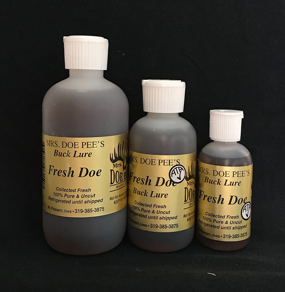 Mrs. Doe Pee's line of Fresh Doe Urine is as fresh as it comes. From our healthy deer to your field, this product will have bucks in your area.Can be used at anytime during the hunting season, in order to get bucks excited about does in the area. This fresh urine can also be used as a cover scent in order to calm the area bucks, and hide the human scent as you are in the timber.