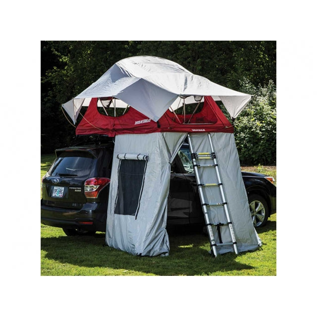 Add another room to your SkyRise rooftop tent with the SkyRise Annex. Perfectly sized to be a changing room, storage area, or shelter from a storm, the Annex slides easily into the SideTrack on the outside edge of the SkyRise floor. The waterproof, PU coated 210D ripstop nylon material keeps you dry in the rain and the two zippered mesh windows keep you cool in the summer heat. Attachment points galore means all of your other SkyRise accessories will still work with the Annex, and integrated exterior hooks and ground stakes will ensure the wind doesn't ruin your shady afternoon snooze.