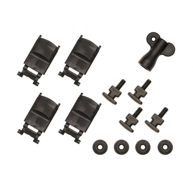 Take your OffGrid cargo basket to the next level with the SmarT-Slot Kit 3. This hardware kit replaces the standard mounting hardware and directly attaches into a t-slot channel on your roof rack. It works with Yakima JetStream crossbars as well as most other t-slot crossbars.